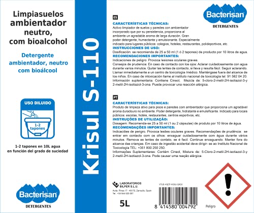 Specification: BACTERISAN Bacterisan Krisul S-110 5L ontvetter vloerreiniger met biologische alcohol, concentraat met bloemengeur, 5000…