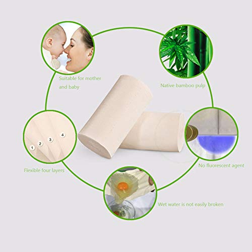 HGUIAZ Toiletpapier, duurzaam, van 100% bamboe, 4 lagen, zacht droog en aangenaam zacht, houtvrij toiletpapier in een…