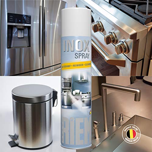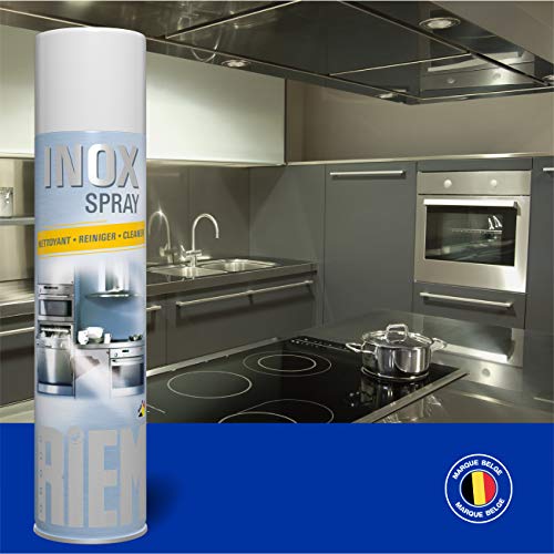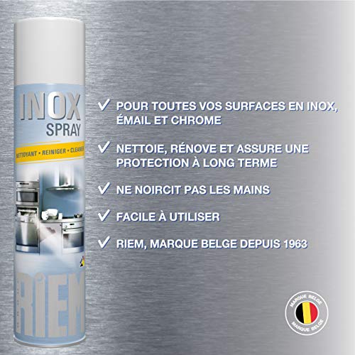 Inox Spray – Roestvrijstalen reiniger – RIEMGeschikt voor alle roestvrijstalen, email- en chroomoppervlakken.Reinigt, polijst, renoveert deze oppervlakken, terwijl het verstrekken van langdurige bescherming dankzij de “waterafstotende” actie op het metaal.Krab niet aan het metaal. Maak je handen niet zwart.Schud voor gebruik. Spray tot 25 cm van het oppervlak om te worden behandeld. Verspreid met een zachte spons of doek. Laat het stralen met een zachte, droge doek.Zorg ervoor dat u voedsel beschermt tegen contact met dit product bij gebruik.