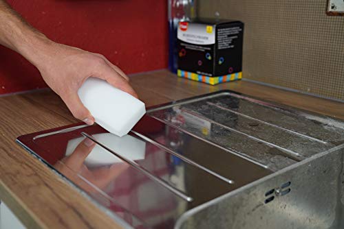 REINIGT ZONDER CHEMICALIËN: De spons is gemaakt van zogenaamde melamine. Dit wrijft weg – als een normale gum – en voert het vuil mee!