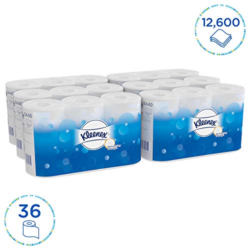 Leveringsomvang: 1X Kleenex Toiletpapier, 12.600 Stuks Van 12 X 9,5 Cm, 36 Rollen X 350 Vel, Afmetingen Verpakkingseenheid (Lxbxh): 39,3 X 13,1 X 19 Cm, Kleur: Wit, Art.Nr.: 8440