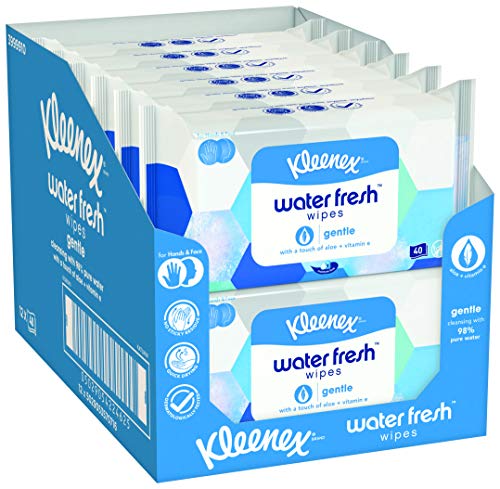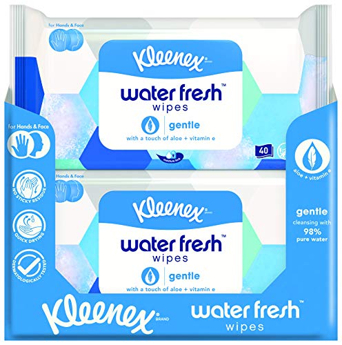 Nieuw. Kleenex water fresh tissues. Voor al die momenten waarop water niet bij de hand is. Kleenex water fresh Gentle tissues zijn verrijkt met aloë vera en vitamine E. De tissues zijn heerlijk zacht, dik en licht vochtig en geven een verfrissend gevoel aan handen en gezicht. Ze laten geen plakkerig gevoel achter en je handen drogen snel. Een frisse, verzachtende reiniging met 98% puur water. Dermatologisch getest. Verkrijgbaar in een hersluitbare verpakking voor thuis met 40 tissues en een handige hersluitbare verpakking voor onderweg met 12 tissues.