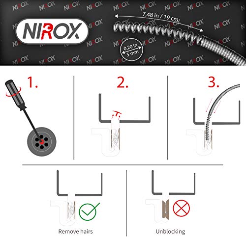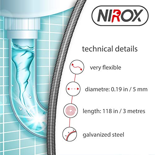 Nirox buisreinigingsspiraal 3m x 5mm – buisspiraal ideaal voor het verwijderen van haren uit de afvoer – gereedschap…