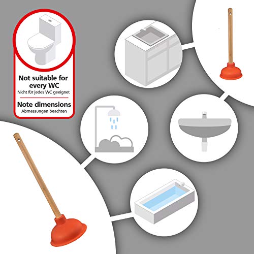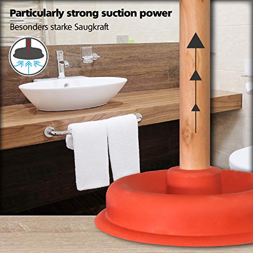 Verwijdert verstoppingen door het sterke zuigvermogen dankzij de krachtige rubberzuiger — Hoogwaardige houten steel met robuuste schroefdraad