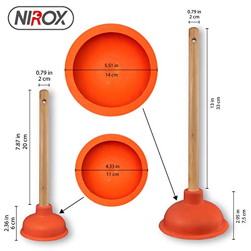Specification: Nirox Set van 2 gootsteenontstoppers – Afvoerontstopper met 110 & 140 mm diameter – Toiletpompontstopper incl. houten…