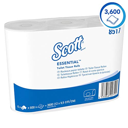 Scott Essential, 8517, Standaardrol toiletpapier, 2-laags, Wit, 36 rollen x 600 vellen