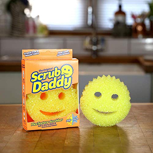 Scrub Daddy De Original Scratch-Free FlexTexture Scrub Sponge heeft een ergonomisch ontwerp met innovatieve technologieën die samenwerken om superieure reinigingskracht te leveren. Scrub Daddy is zacht, samendrukbaar en meer absorberend in warm water. In koud water is hij stevig en kan hardnekkig puin verwijderen zonder de noodzaak van extra agressieve chemicaliën. Voedseldeeltjes spoelen weg met een paar knijpen onder warm stromend water. FlexTexture droogt binnen een uur, zodat het niet schimmel en is onafhankelijk in het laboratorium getest om geen geuren vast te houden voor maximaal 8 weken. Reinig snel beide zijden van serveerlepels en gebruiksvoorwerpen in één beweging. Scrub Papa’s ogen houden je vast, zodat je nooit meer op een moeilijk bereikbare plek loopt. Met zijn cirkelvormige vorm kunt u de zijkanten en bodem van containers tegelijkertijd reinigen. Deze gele schrobspons is geschikt voor glas, antiaanbaklaag, graniet, keramiek, hout en roestvrij staal.