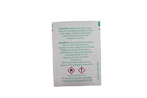 Specification: TVTech Packs van 2ml Hand Sanitising Gel Sachets 65% Alcohol, Eenmalig gebruik doekjes, Wegwerp (Pack van 100)