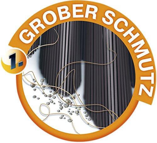 Veegschepset voor een moeiteloze en grondige opname van stof en kruimels zonder resten. Overtuigende veegprestaties dankzij 2-in-1 borstelconcept. Fijne, zwarte borstelharen vegen moeiteloos alle vuildeeltjes samen. De dikke, rode frontborstelharen zorgen voor een optimale reiniging van hoeken, voegen en randen. Een stabiele en overgangsloze rubberen lip maakt een eenvoudig en grondig opvegen mogelijk.