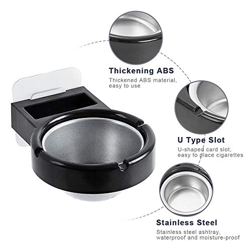 Yemiany Waterdichte Wandmontage Asbak, Muur Opknoping Asbak, 2 STKS Asbak met RVS Sigaret Asbak en met Zuignap Asbak…
