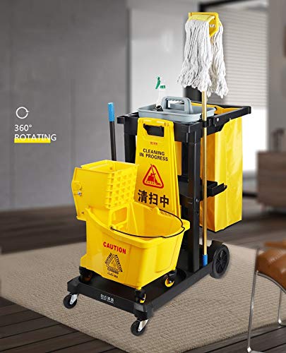 Specification: ZAQI Commerciële Schoonmakende Karretje Kar met Zak, 3 Plank Schoonmaken Rolling Janitor Cart, Janitorial Cart…
